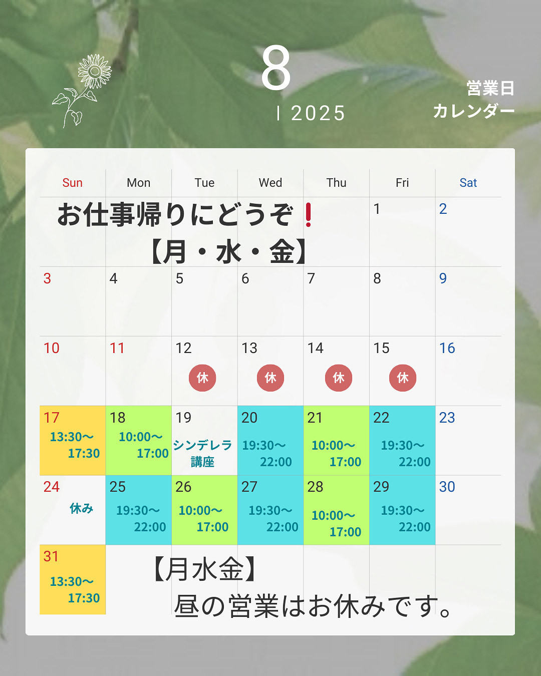 仕事帰りにどうぞ!
